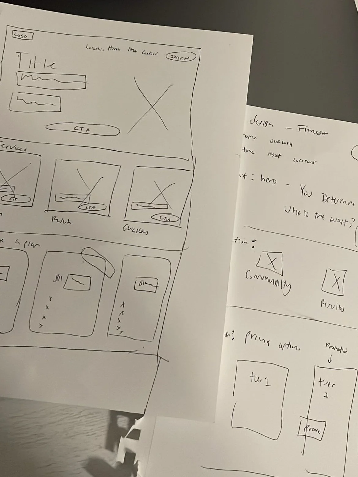 The rough paper sketches were completed, drawing inspiration from various common gym websites.